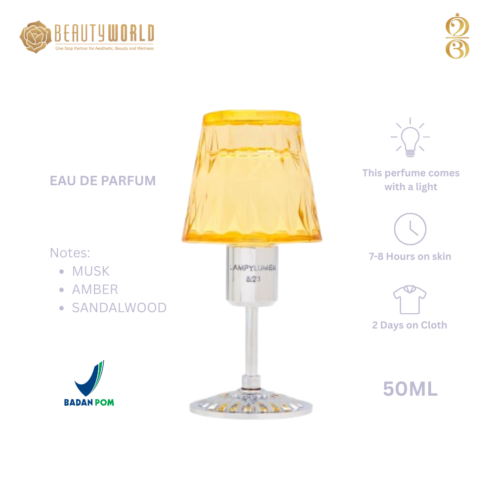 8/23 Fragrance Morning Aex Yellow adalah produk EDP (Eau de Parfum) berukuran 50ML dan memiliki aroma musk, amber, dan sandalwood yang memberikan kesan hangat dan sensual pada parfum ini.