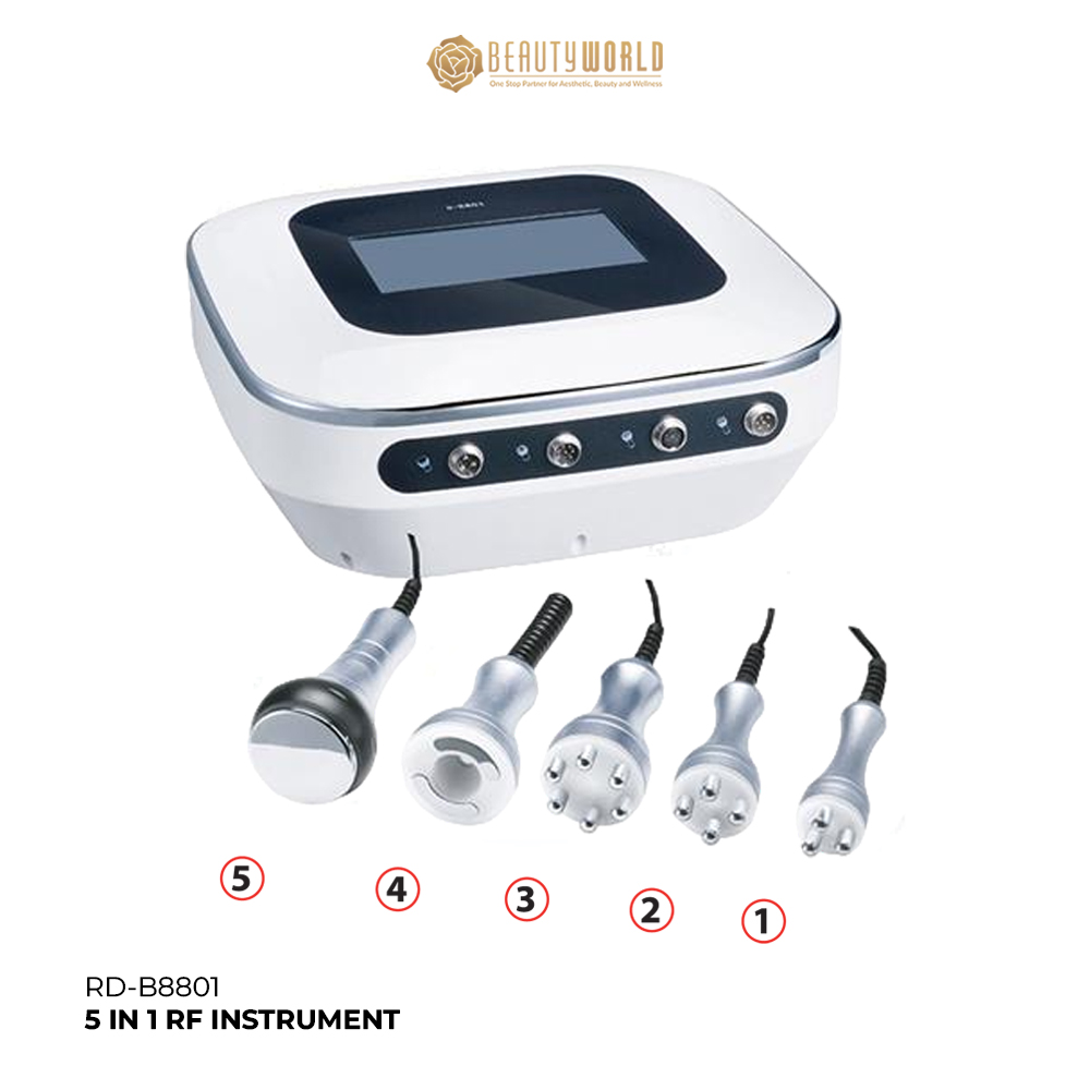 5in1 RF Instrument adalah alat kecantikan multifungsi yang menggabungkan teknik RF, ultrasonik, LED, microcurrent, dan ion untuk mengencangkan kulit, mengurangi kerutan, dan meningkatkan penyerapan serum. Produk ini sangat cocok untuk perawatan anti-aging oleh profesional.