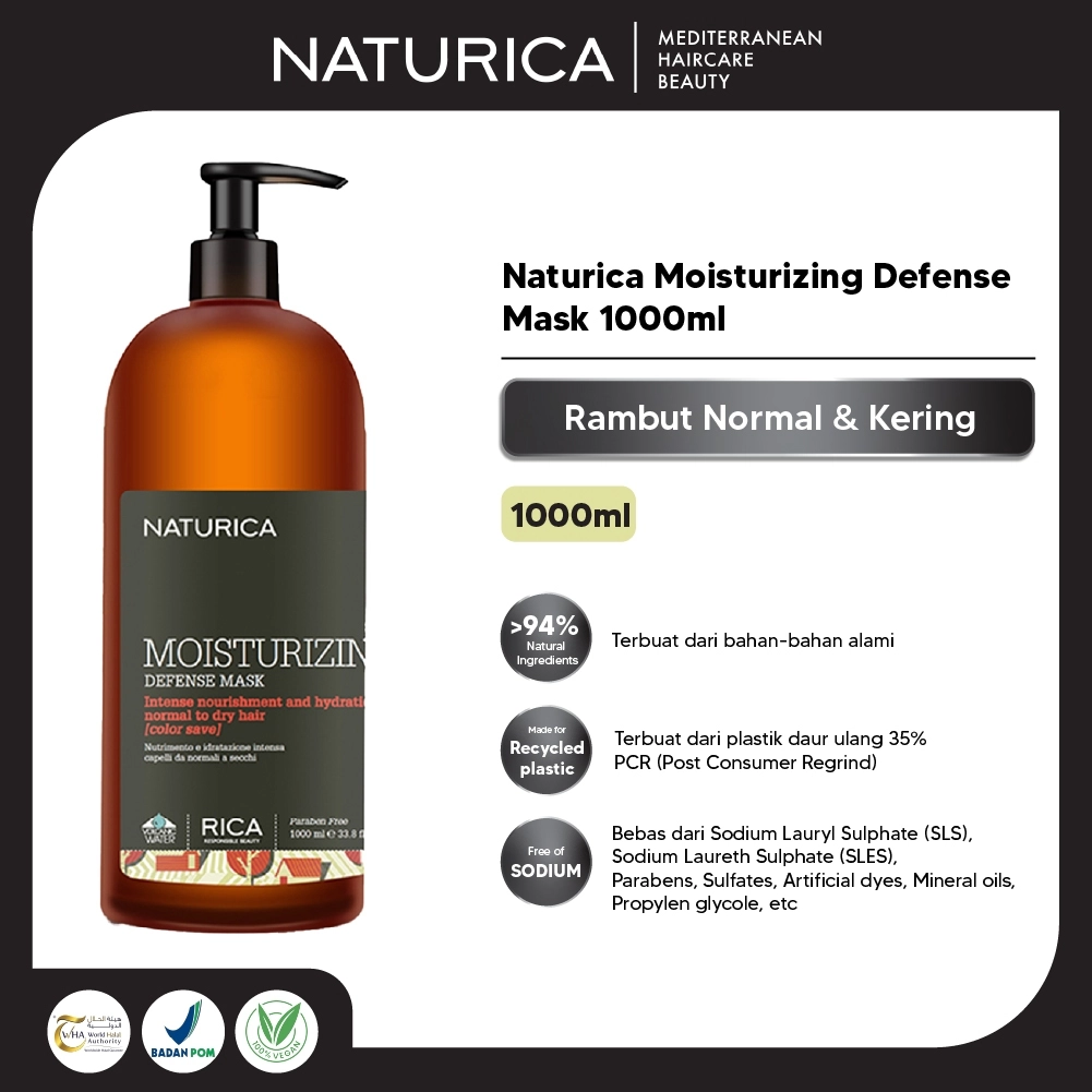 Naturica Moisturizing Defense Mask adalah masker rambut intensif untuk rambut kering dan berwarna. Formula kaya protein dan antioksidan membantu merevitalisasi, melembapkan, dan melindungi warna rambut agar tetap tahan lama dan bercahaya.